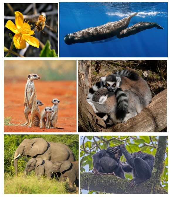Across the animal kingdom, ethologists have been busy discovering many complex communication systems. Honeybees perform the famous waggle-dance, in which forager bees communicate to nestmates the direction and distance of food sources via precise motion patterns (e.g., Ai et al., 2019). Sperm whales use “codas” —click sequences that vary in rhythm and tempo— that may function somewhat like a phonetic alphabet, with recognizable “clan-dialects,” to identify individuals and to form their clans (e.g., Sharma et al., 2024). Meerkats use different alarm calls toward predator type, urgency, and context (e.g., Manser, 2001). Ring-tailed lemurs have distinct alarm calls, distinct vocal repertoires, and use scent marking and postures for communication, in ways that are highly adapted to social structure, predator detection, and territorial behavior (e.g., Bolt et al., 2015). Elephants communicate via low-frequency rumbling, which can travel long distances, combined with visual displays and tactile signals (e.g., Eleuteri et al., 2024). These are just a few examples. What we see in the animal kingdom is that many species have multiple signals or calls for different functions (alarm, recruitment, mating, territory, social hierarchy, etc.), and that these signals or calls can be conceived as “words.” Animals also have “listener responses” that are reliably differentiated by call type. Thus, there are incredible variations in animal verbal behavior, which was once thought impossible in non-human animals.